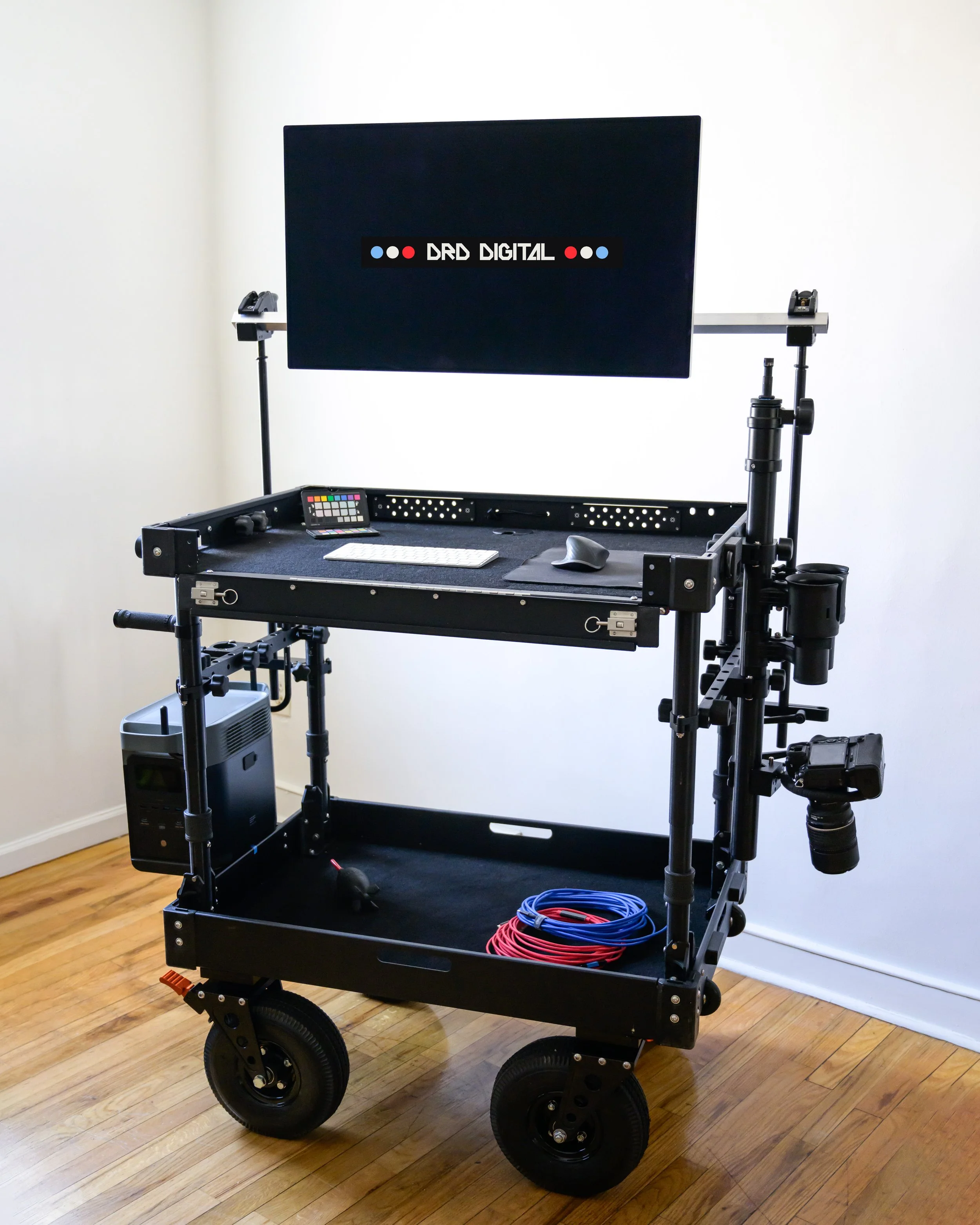 ROLLING CART. OPTIONAL 32” PRO DISPLAY AND ECOFLOW BATTERY. - This is the workhorse on most production days.